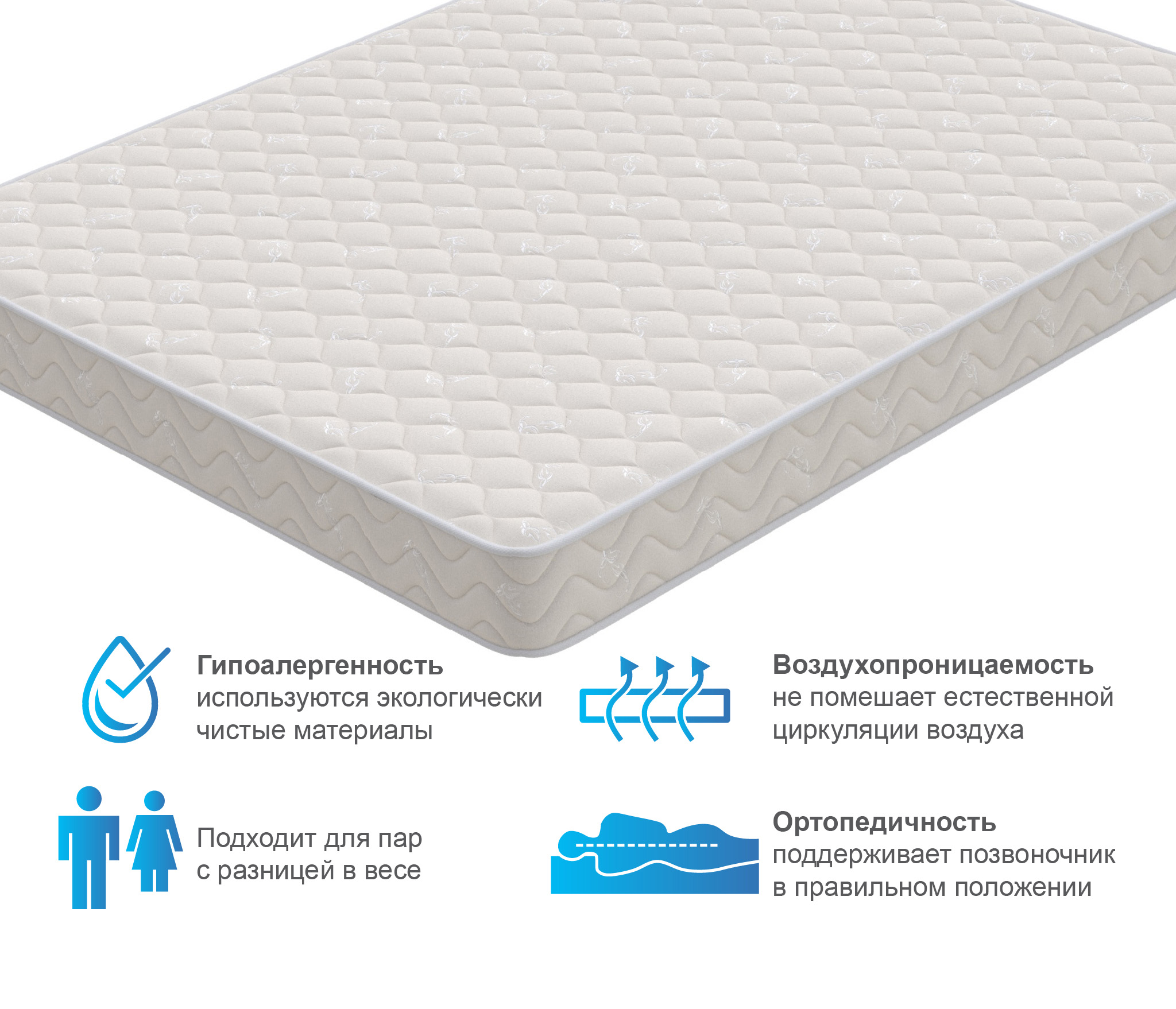 Матрас неплох за свои деньги, сшито всё прочно, ничего не торчит, не гремит, гуд.