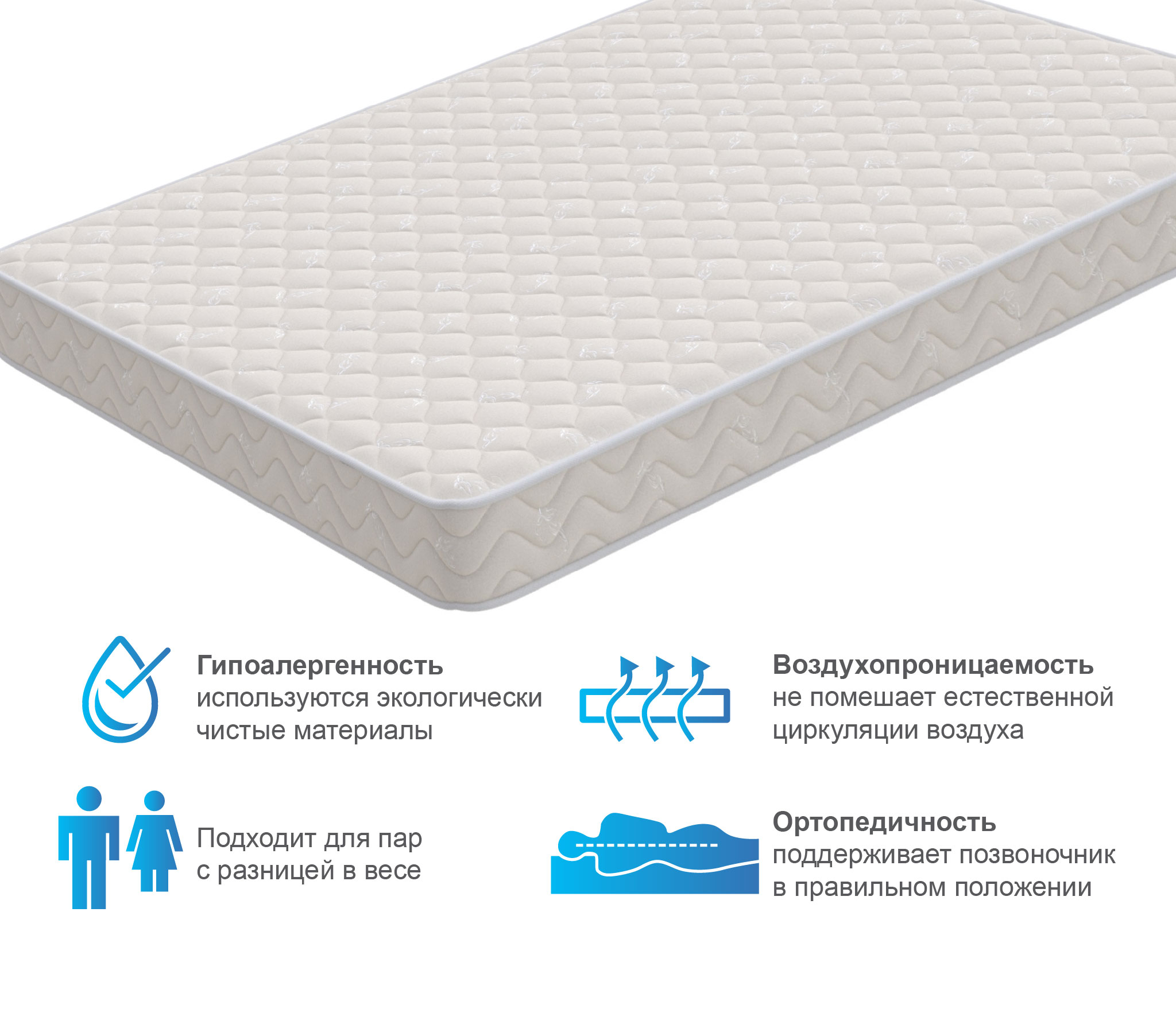 Базовая модель для комфортного отдыха. Сочетание комфортных слоев из мягкого ортофом, жесткого кокоса с би-компонентами с независимым пружинным блоком наделяют матрас универсальной средней жесткостью. Отлично подойдет для обустройства спального места на даче, в съемной квартире или в качестве временного решения. Матрас не требует переворачивания.